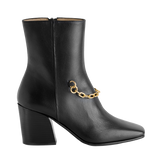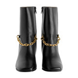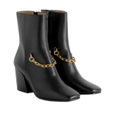 For the woman who wants it all we have a shoe where you can have it all. Introducing our new Retrofit boots a classic nappa leather black ankle boot accompanied by a gold chain accessory.